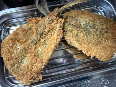 本日の男飯は、アジフライです。